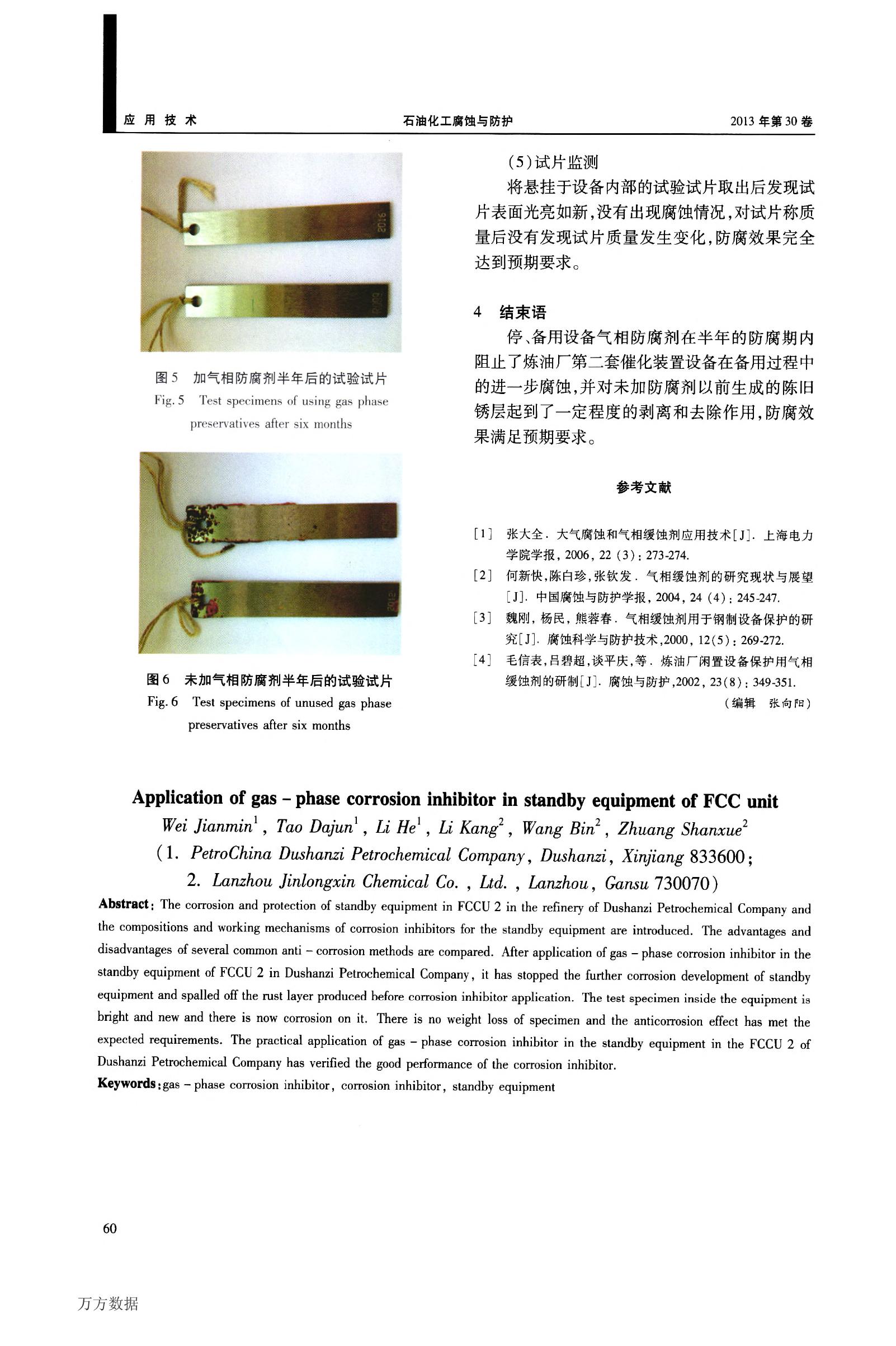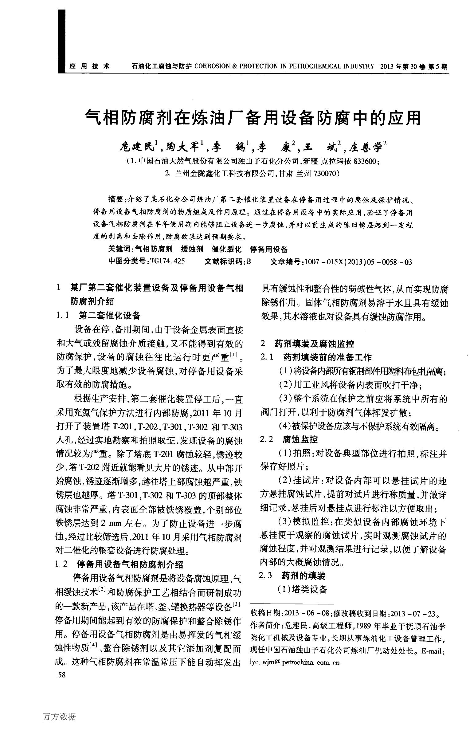 《停備用設備氣相防腐劑在煉油廠備用設備防腐中的應用》正式發表