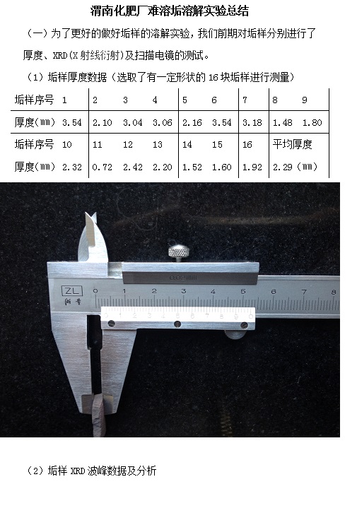 | 渭南化肥廠EA102 難溶垢溶解實驗總結(jié) |